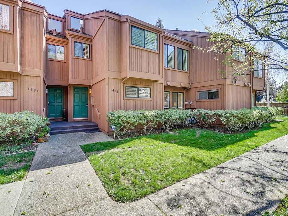 Rarely available stunning townhouse in prime Mountain View location. Walden Park is a small tight knit community of only 17 units but covers a vast open area that is well maintained. This exquisite 2-level townhouse has 4 bedrooms and 3 full baths. On the ground floor is the master bedrooms with updated bath, two additional bedrooms, another full bath and laundry. The 4th bedroom, currently utilized as the office is on the upper floor. A separate family and living room, vaulted ceiling, updated kitchen, hardwood floor through-out, central A/C and heating, and a lovely balcony that overlooks the backyard and green belt. Community has resort like setting with pool & spa, play area and plenty of lawn. Excellent location that is close to high tech firms, best MV schools, walk to grocery and shops, Cuesta Park and Huff elementary. Short ride to the vibrant MV downtown.