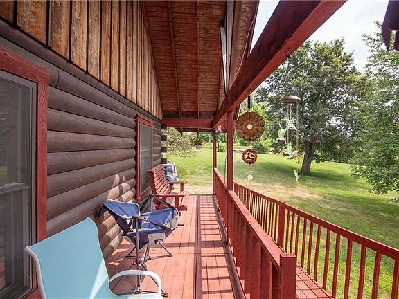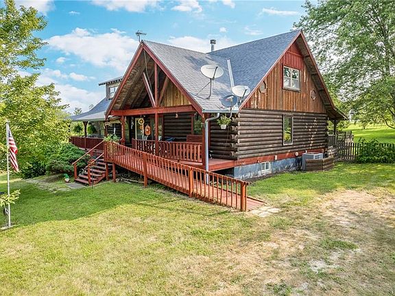 WOW! DREAM OF OWNING A LOG HOME IN THE MIDDLE OF A BEAUTIFUL PRIVATE ACERAGE? Well look no further! Beautiful A-Frame log cabin with main level living and both a covered front porch view plus covered back porch view! LAND IS 3.19 ACRES! Many TREES on the land plus a large 18 X 30 BARN that is great for storage! UNIQUE ONE OWNER PROPERTY built with an unfinished concrete basement / steel beam flloor construction. GREAT ROOM HAS LARGE FIREPLACE WITH STONES that is focal point of the room. SPACIOUS HOME with 2nd floor of a loft room with a catwalk between to go to the 3rd bedroom/ bathroom. Many details of this home are set up for walker or wheelchair access with a front ramp and zero level shower. Main level laundry room is off the kitchen. KITCHEN IS SPACIOUS with all appliances staying! Living room, dining room and kitchen all have vaulted ceilings! Several ceilings have wood plank detail. Garage is a 2 car garage and basement would make a nice shop, hobby area or storage. Basement is stubbed in for a bathroom. Home is built in 2002 and could be personalized with some cosmetic updates. Roof replaced July 2018. Plenty of space to add a firepit, pool, chicken coop, garden or more! Lovely quiet location with surrounding properties on acreages too! GREAT location only miles from Lee's Summit for shopping, restaurants, and more!