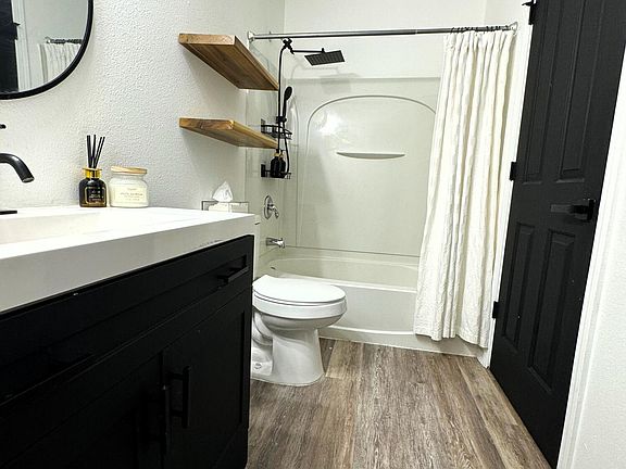 Discover contemporary elegance in this 4-bed, 2-bath home with a sleek design and a 2-car garage. Living room boasts high ceilings, gas fireplace, and stylish finishes and accents. Enjoy indoor-outdoor living with a covered deck overlooking a spacious backyard, perfect for entertaining. Modern amenities and chic finishes throughout make this residence a stylish retreat.