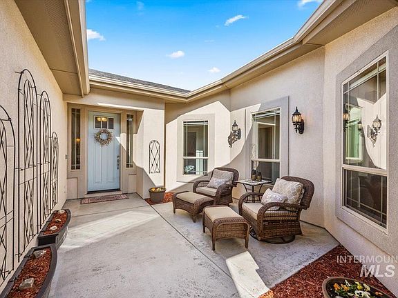 SINGLE LEVEL LIVING w/TWO main-level Primary suites!! This floor plan nails it! Featuring a welcoming courtyard, covered back patio, a main-level primary suite AND A large guest suite which provides privacy and comfort for your guests. Two add'l bedrooms also offering privacy away from main living space in this must see floor plan . Open great room with a gas fireplace. The kitchen features a gas stove, large pantry, upgraded stainless appliances, gorgeous cabinetry with Quartz countertops. Surround everyone around the large island or eat in the dining room that flows seamlessly into the living area, making it perfect for entertaining. The primary suite is a true retreat, offering a spacious layout with a luxurious en-suite bathroom featuring dual vanities, a soaking tub, and a walk-in shower. Step outside to the covered back patio, where you can enjoy the beautifully landscaped fenced backyard included is the fully functioning greenhouse and raised flower beds. The large 4 car garage will not disappoint.
