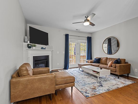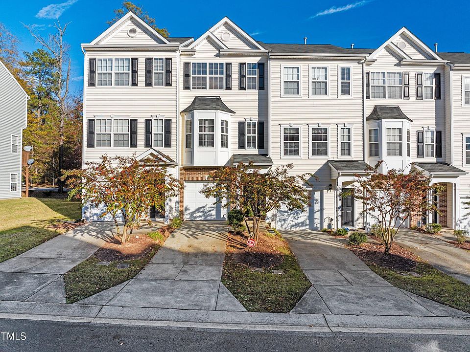 Exceptional location! This impeccable townhome features hardwood floors on the main level and the stairs. The open floor plan offers a large kitchen with an island, granite countertops, Stainless Steel appliances, 42-inch cabinets, a breakfast area, a pantry, a bay window with plantation shutters, and a bar. Enjoy the flow and custom and recessed lighting from the kitchen to the dining room and the spacious family room with a gas log fireplace and French doors to the deck to complete the view. Expect the unexpected in the lofty primary suite with a vaulted ceiling, a bath with his and her vanities, and a garden tub/shower. The secondary bedroom/2nd primary suite offers a full bathroom and walk-in closet. Retreat to the lower level bonus room with French doors and a patio, perfect for an in-home office, media room, or gym. This beautiful townhome is in move-in condition and equipped with a refrigerator, washer, and dryer that conveys. This gem is just minutes from Downtown Durham, NCCU, RTP, NC 147, I-40, I-540, RDU Airport, shopping and dining.