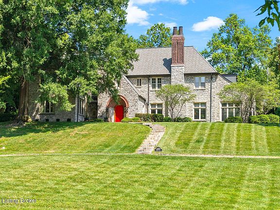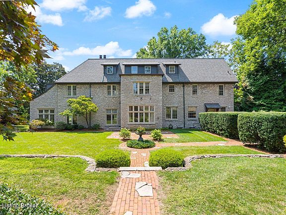 Perched atop one of Louisville's most beloved streets, this original Stratton Hammon stone masterpiece offers the opportunity to own a private piece of Louisville's rich architectural history, featuring Hammon's acclaimed design and millwork on nearly an acre of manicured lawn and gardens. Publicly available for the first time in nearly 30 years, this iconic Spring Dr home sits just steps from the gorgeous grounds of Cherokee Park as well as the countless amenities, restaurants and businesses of Bardstown Road, offering historic charm in an exceptionally convenient area. With an unparalleled first impression, guests first approach the home from a semi-circular driveway and staggered stone steps, greeted by an impressive multi-arched brick entryway and stone porch. Intricate trim work, arched openings, and mixed-width pegged hardwood floors set the tone for the first floor of the home as guests arrive into the spacious foyer. A handsome study with incredible wooden bookshelves and bright windows overlooking the English-style backyard garden invites guests further into the home. The first floor continues into the expansive great room filled with natural light and anchored by a one-of-a-kind marble fireplace, featuring carved marble mantles obtained from Rome by Hammon during the home's original build. Off the great room, a bright sunroom with cozy bay window and access to the home's front and rear yards completes this wing of the home. Past an incredible curved stairwell with stained glass window, the spacious formal dining provides the perfect place for elevated entertaining. The home's renovated gourmet kitchen offers tasteful modern updates while still preserving the rich character and style of the home, featuring granite countertops and backsplash, sleek wood cabinetry, prep island with gas range, Subzero refrigerator, walk-in pantry, and stainless steel appliances. A fully-outfitted wet bar with beverage cooler and storage shares the kitchen with the windowed breakfast room, creating the perfect spot for time with family and friends. A powder room completes the first floor. Accessible by two stairwells, the second floor features an incredible primary suite with spacious bedroom with sitting area, gas fireplace, and custom closet storage, as well as a designer primary bathroom with arched soaking tub, glass shower, and his-and-her vanities. On the opposite wing, a spacious corner bedroom with en-suite bath and views overlooking the front and side yards offers a welcoming guest suite for any occasion. The second floor features two additional bedrooms with Jack-and-Jill bath and gracious closets, as well as an oversize cedar closet for additional storage. The home's third floor features two cozy bedrooms or studio spaces, shared full bath, and additional room for storage. The estate's grounds are equally unforgettable, featuring a brick and stone patio, enclosed and flat backyard with stone retaining wall, peaceful water feature with waterfall, grilling area with convenient gas line, and impressive 2-car garage with breezeway designed to seamlessly blend with the main house. With additional parking in the front and rear of the home, guests are guaranteed a breathtaking entrance from any angle. A once-in-a-decade opportunity, this home is not to be missed.