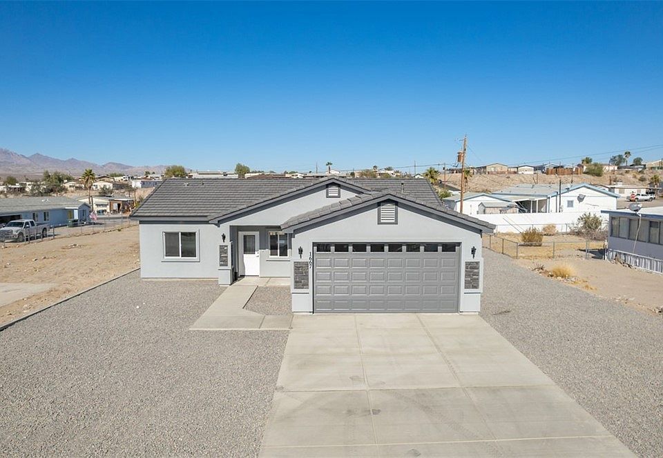 Beautiful new construction for sale in the Buena Vista community, amazing opportunity here for anyone looking for great quality & lots of space for less than $300k! Excited to bring this one to the market as it features 1,310 sq ft of living space, a split floor plan for more privacy, great finishes, great colors, tile walk-in shower & closet in the master bedroom, and perhaps best of all, plenty of space on the lot for all your toys! The property features a large back yard & side parking that will fit everything! Not to mention conveniently located near everything you need, including launch ramps to the Colorado River, parks, groceries, shopping, restaurants, schools, and just a quick drive to Laughlin! Call your agent for showing today!