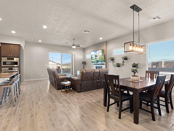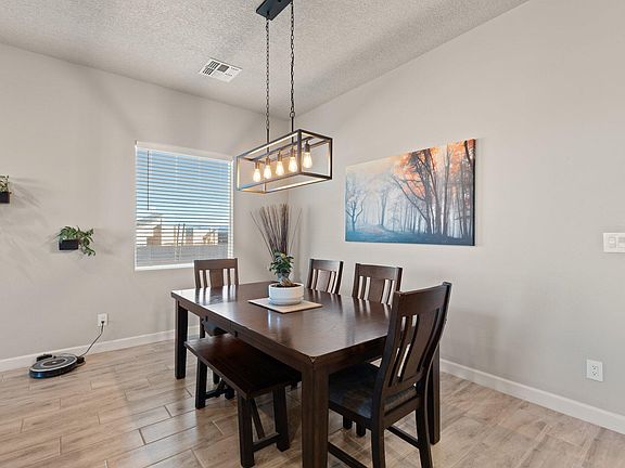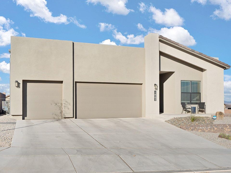 This home is 2,293 sqft of modern living that features the finest of designer finishes. With tall ceilings and large doors throughout the home, the open and massive kitchen/living/dining area is the core of this fantastic floorplan. Off the large living area is a covered patio with an extended living area and fully landscaped/irrigated backyard, enjoying the perfect views of the Sandia and Monzano mountains. The large owner's suite features a separate sitting area with a large primary bath and walk-in closet. This 3-bedroom/2.5 bath home has an oversized and finished 3-car garage. The house sits on a premium lot, has wifi-enabled kitchen and front lights, and a tankless water heater. VA Assumable Interest Rate!