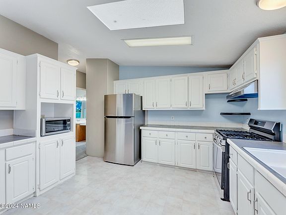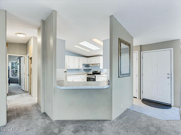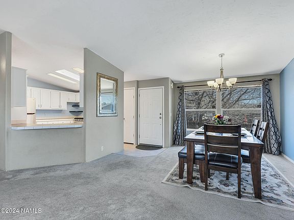 Discover the ideal setting for your starter home, vacation retreat, or savvy investment venture! Inside you'll be greeted by vaulted ceilings & expansive living area, perfectly suited for unwinding, hosting gatherings, or indulging in game nights. The split floor plan ensures privacy & convenience. Your sanctuary awaits in the primary bedroom, boasting dual sinks, a separate shower and tub, & an expansive wall-to-wall closet. The kitchen dazzles with abundant cabinetry, gleaming SS appliances, & plush carpeting with upgraded padding flows throughout the home. Step outside to your private oasis, where tranquility reigns with no rear neighbors, lush artificial turf, & fenced yard. Conveniently located minutes from Downtown, shopping, NF access, & NAU. Newer insulated garage door & roof.