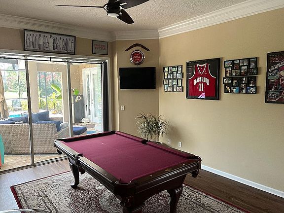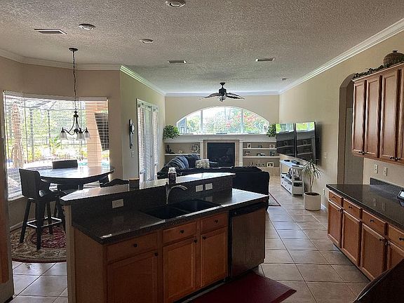 Beautiful pool home on the golf course in Eagle Harbor. Excellent location close to Talons Restaurant and the golf club. Many upgrades including new pool/hot tub/screen enclosure with built in LED lighting built in 2020. A new AC unit in 2023 and new hot water heater in 2024. House was freshly painted in 2022 along with new carpet in 2020. A 50 gallon underground propane tank was added to heat the pool/spa and supply the gas fireplace, grill and patio heater. The backyard is a luxurious tropical oasis equating to Florida living at it's finest. It contains 3 fruit trees consisting of an orange, lemon and lime tree. The home contains 7 security cameras including a DVR as well as a ring doorbell and a ring spotlight camera.