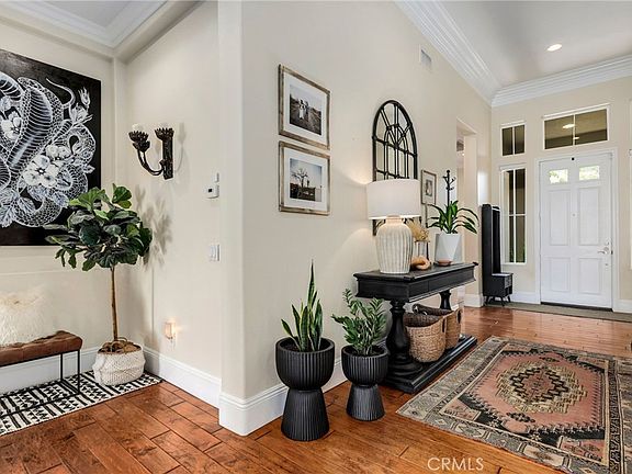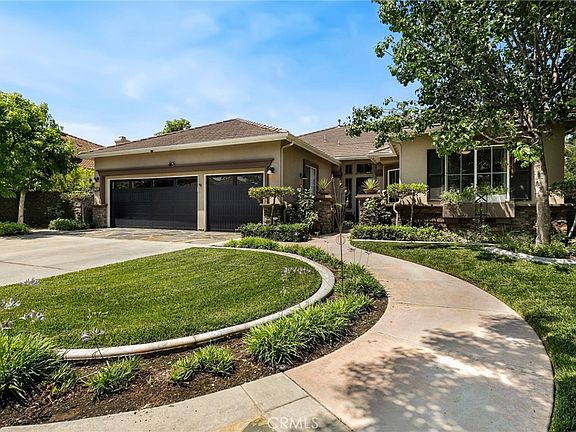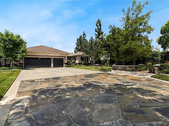 Indulge in extraordinary living in a highly desirable Yorba Linda cul-de-sac neighborhood! Welcome to 16670 Compass Cir, a stunning SINGLE STORY residence situated on a sprawling 19,000+ sq.ft corner lot. This exceptional 4 bedroom, 3.5 bath home is a perfect blend of elegant, functional indoor design and the ultimate outdoor California living! Enter into soaring high ceilings with custom crown molding, gorgeous wood floors, and views of the expansive backyard. Formal living room boasts an inviting fireplace and double bi-fold doors that open to the covered California room with views of the sparkling pool. Formal dining room is just steps away from the open concept Great Room featuring the remodeled kitchen, spacious family room, and another dining area. Kitchen boasts a large island with bar seating, newer appliances including the two ovens, quartz countertops, and hand-made tile backsplash. Luxurious Primary bedroom suite overlooks the backyard with views of the pool, jacuzzi and sauna, and a remodeled bathroom with separate tub and shower, walk-in closet and a vanity area. Beat the heat in the spectacular salt-water PebbleTec pool with solar heating and water feature, or relax in the private barrel sauna. Lush green yard with a play structure AND a playhouse, and brand new 4-hole putting green is also available for entertainment. Built-in BBQ with bar seating, multiple seating/relaxing areas, a fire pit complete this ultimate outdoor living experience. Additional features include fully owned solar panels, a whole house reverse osmosis water purification system, remodeled bathrooms, new garage doors for the attached 3-car garage & more. Ideally located with access to El Cajon horse & bike trail directly behind, and zoned for excellent Placentia-Yorba Linda schools.
