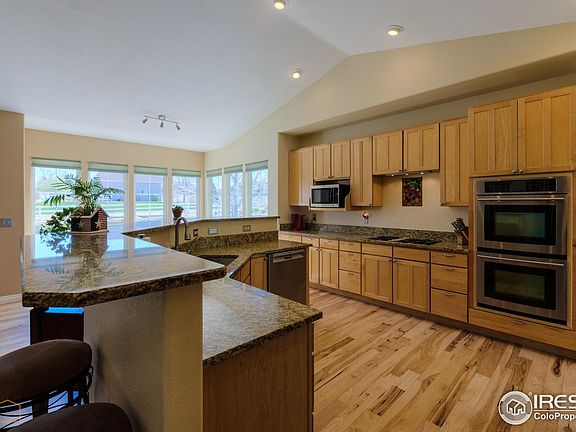 This bright and sunny custom built ranch plan features 9 foot vaulted ceilings, 3 bedrooms, 3 baths, office with glass French doors, sunroom, 3 car attached garage, Class A sized RV garage/workshop plus a huge unfinished basement. Recently refinished Birch wood floors flow throughout the main living area in this open floor plan. You will love the gourmet kitchen featuring stainless steel Jennair double ovens, Jennair gas cooktop, Bosch stainless steel dishwasher, granite countertops with bar seating, two pantries and custom Birchwood cabinets. The sunny and spacious breakfast nook is a delight for enjoying morning coffee and watch the hummingbirds at the feeder, or you can relax in the 400 sqft sunroom with cathedral ceiling, stained glass windows, tile floor, electric fireplace, stacking glass doors that open up the wall to one of the two back patios with a 10x8 gazebo. The formal dining space is a great flex room along with the family room and stone covered gas fireplace. Morning sun also brightens the primary bedroom with tray ceiling and a en-suite 5 piece luxury bath with jetted tub and large walk-in closet. The Full hall bath has a granite counter top, 2 sinks, tile floor and tile surround. The main floor laundry has a tile floor, cabinets, a closet and tub sink. Lots of room for expansion in the huge full unfinished basement with rough-in bath plumbing, 10 foot ceilings, 2 egress windows, regulation size pool table. There is plenty of parking in heated 3 car attached garage with access door to yard, epoxy painted floor, hot and cold water spigot, refrigerator and tv plus the 30x40 foot Class A RV garage with additional vehicle parking, 9000 LB. CHALLENGER automotive lift and load bearing joists for second floor storage. The 1 acre lot is professionally landscaped with an irrigation system including raised bed gardens, custom outdoor lighting, xeriscape front yard with West facing concrete circular drive. This one has it all including mountain views!