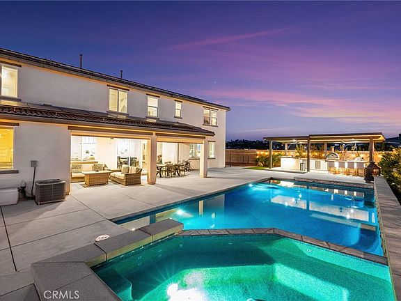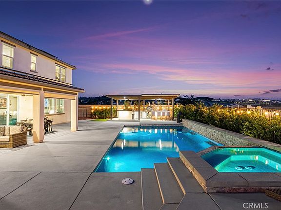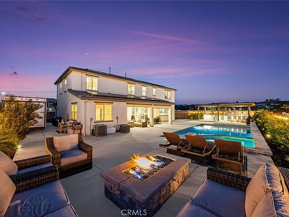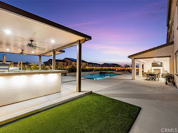 This home also features a three-car attached garage, gated RV parking, and a true entertainer’s backyard. Enjoy resort-style living with a custom outdoor kitchen, pool, spa, fire pit, and a large covered patio with a cozy fireplace, all set against the backdrop of stunning city lights views.