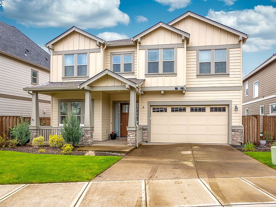 Amazing Craftsman Style 2019 built home in the sought after River Terrace community. Covered front porch and two levels of expansive, partially covered deck in the back overlooking a natural greenspace. Spacious and open floor plan featuring a gourmet kitchen with central island, abundant storage and walk-in pantry. 4 bedrooms + main floor office and formal dining + bonus room. High ceilings and overflowing natural light! Primary suite includes double walk-in closets, soaking tub, dual sinks and tiled walk-in shower. EV charging station in the garage. Community park just a block away and a community swimming pool/rec center opening in late May. Great Beaverton schools including Scholls Heights and Mountainside HS. Just blocks from Progress Ridge and Murrayhill with shopping and several restaurants.