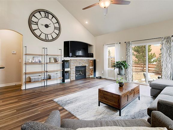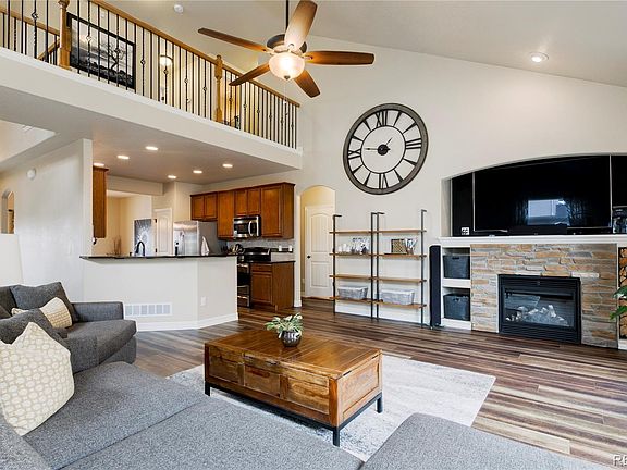 Everything you need and more welcomes you to this former model home. Special touches throughout, built for comfort with thoughtful attention to the layout, the colors, the lighting and the use of space. The well outfitted kitchen features granite slab counters, tile backsplash, upgraded stainless appliances and plenty of prep space, task lighting and storage. Just steps from the great room, enjoy the outdoor living space with extended flagstone patio. Bonus storage shed with plenty of workspace, storage and lighting just steps from the back door. The private main floor master suite is cozy but spacious and features a charming sitting area and plenty of natural light. The 5 piece en suite has elegant finishes including a double vanity, soaking tub and bronze fixtures. Also on the main floor is the dining room and a spacious laundry. Upstairs, more space awaits with a bonus loft, 2 spacious bedrooms with walk-in closets, plush carpet and a shared bath. Downstairs, enjoy lots of space with 2 more bedrooms, home theater, wet bar and more. Throughout the home, custom Levolor blinds, warm tones, elegant and convenient touches await you. Several home automation features are also added bonuses with this home. Contact Listing Agent for list of personal items negotiable for sale.