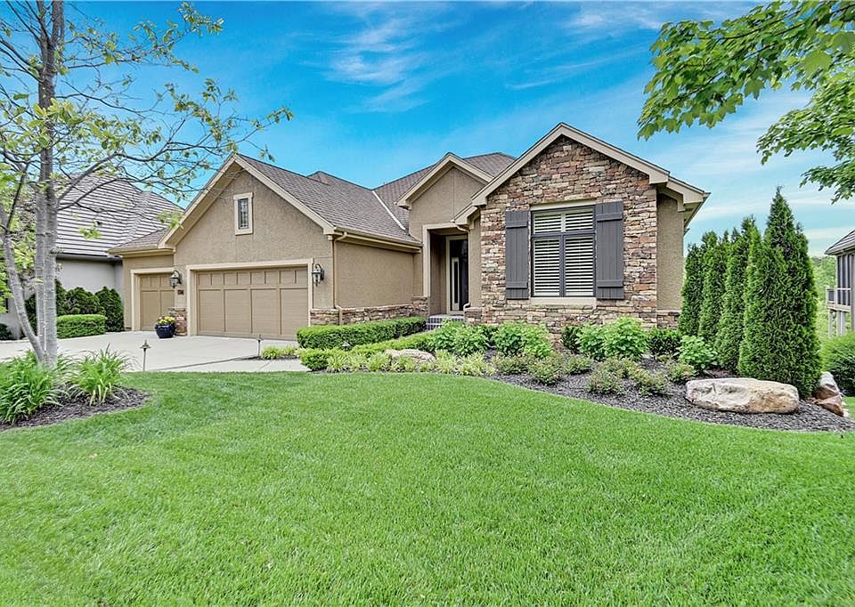 Experience luxury living at its finest in the immaculately maintained 1.5 reverse nestled within the prestigious gated community of Loch Lloyd. Boasting a serene wooded lot, this open floor plan home features hardwood floors & floor to ceiling windows for natural light. Entertain effortlessly in the spacious great room with a cozy fireplace, seamlessly flowing into the dining room and gourmet kitchen featuring a large island, granite counter tops, stainless steel appliances, & a walk-in pantry. Step onto the relaxing screened in porch of the kitchen or retreat spacious primary bedroom with a heated bathroom floor for ultimate comfort. Additional highlights include a versatile second bedroom/office on the main level, generous lower level with a family room, game area, and two large guest rooms and baths, complemented by a bar with dishwasher. Outside a patio awaits, perfect for outdoor gatherings. Ample storage space accommodates your lifestyle needs, whether a golf simulator, or a workout area, with the  convenience of a 2nd set of stairs from the garage to the lower level .Discover the unparalleled amenities of the Loch Lloyd community, completing this picture-perfect lifestyle opportunity! Don't miss your chance to call this pristine retreat your home. Come check it out!