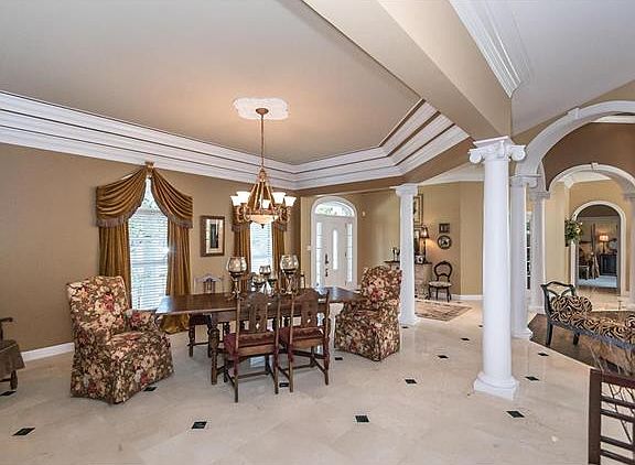 Stunning custom 5 Bedroom 3.5 Bathroom Atrium Ranch offering exceptional interior finishes and details including exquisite crown molding and millwork, three fireplaces and an array of incredible ceilings throughout. The open floor plan is perfect for easy living and entertaining. The Master Suite features two large walk-in closets, sitting room and updated bath with double vanities, spacious walk-in shower, jetted tub and heated floor. The recently updated kitchen opens to the comfortable Hearth Room with woodburning fireplace with wood mantel and stone surround flanked by built-ins. The lower level offers a large Family Room, gym, soundproofed recording room, bar, two bedrooms, full bath and a Sound Room designed family theatre. Outside, there is a beautiful heated saltwater pool with waterfall and spa backing to woods. Zoned HVAC and oversized three car oversized garage. Over 5,300 square feet of finished living space on a gorgeous private almost two acre lot. A must see!