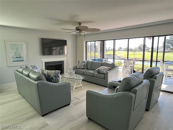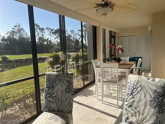 $1M views in this golfer's paradise. The Forest Country Club has 36 holes of pristine golf. Open tee time system. Rarely available 2 bed + flex room, 1st floor end unit, in 24-unit association of Quail Cove. Convenient to everything. Located off Tamiami Trail just north of Alico Road. Practically new furniture included in the price. The private community pool is 100 yards from the front door. It has an open concept to give a constant view of the golf course through 15' of sliding glass windows. Completely renovated in 2023. Quartz counter tops. New luxury appliances, including a bar mini refrigerator, a five-door refrigerator, a double oven with an air fryer and upgraded microwave. The kitchen has an eat-in area and a desk. Lots of storage in the kitchen area, a pantry cabinet, and a closet. The cabinets include some large drawers for pots and pans. The Lanai has vinyl windows and pull-down shades for all seasons use. The master bath has a shower and soaking tub. The car port has a storage closet. The Forest is an active community with tennis, pickleball, bocce ball and golf. Club Memberships not mandatory, but available.