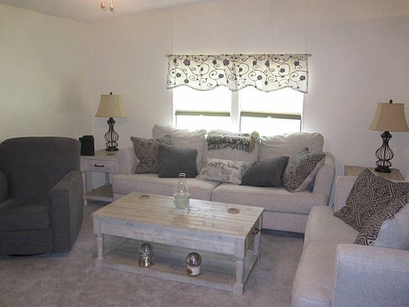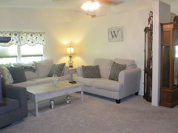 This home will be sold furnished or unfurnished. Unfurnished price is $39,900 and furnished price is $44,900. This 2 bedroom/2 bath double wide home is located in Foxwood Village, an active 55+ mobile home community in the heart of Lakeland. The home has recently (May/June of 2021) been updated with new laminate and carpeted flooring, painted throughout, as well as newly furnished. There are all new solar paneled, cordless blinds throughout. The home measures 25' x 40', with an additional 10'x16' air conditioned Florida room. The home has 12'x55' driveway with a two car carport. There is an 8'x8.5' attached shed and a 10'x10' storage room. Lot rent is $766.00/month. Room by Room Description Listing Measurements and Furnishings: Living Room 13.6' x 18' The living room is furnished w/ a sofa & matching love seat, coffee table w/ 2 matching end tables (all Ashley brand purchased June 2021), corner curio and grandfather clock. 75" Samsung flat screen TV with stand (one year old). Lighted ceiling fan. Flooring is newly carpeted with water repellent carpet padding. Florida Room 10'x 15.6' Walk out from the living room to the Florida room through the sliding glass doors. It features built-in cabinets. Window A/C unit. Flooring is concrete. Kitchen 11'x12' This spacious kitchen opens into the dining room. It comes with plenty of cabinet space, nice direct lighting. The Whirlpool stove and refrigerator were purchased June 2021. Flooring is new laminate. Dining Room 9' x 9' The dining room is open to the kitchen and living room and is furnished with a dining table with pop-up leaf and four chairs, 2 decorative stands, and a new Primo water cooler. The laminate flooring flows from the kitchen to the dining room. Master Bedroom 14' x 14' Furnished with a Signature Gel split king bed in full encasement mattress protectors, 2 night stands with charging stations, chest of drawers, computer desk and 50" TV. Very large 6.5' x 8' walk-in closet. Lighted ceiling fan. Flooring is carpeted with water repellent carpet padding. Master Bathroom 7' x 8' Walk-in Shower. The bathroom was previously remodeled with new shower enclosure, vanity and sink w/ mirror, medicine cabinet and toilet. There is a nice linen closet. Flooring is laminate. Guest Bedroom 10' x 12' Furnished with a queen bed, 2 stands and a 50" TV with stand. Large straight closet. Lighted ceiling fan. Flooring is carpet with water repellent carpet padding. Main Bathroom 8.6'x5' Tub/shower combination. The Bathroom was previously remodeled with new enclosure, vanity and sink w/ mirror, medicine cabinet and toilet. GE washer and dryer purchased new June 2021. Flooring is laminate. Storage Room 10'x10' Located off of the living room, once finished out, this room could be used for a third bedroom, office, craft room, game room. Attached shed 8'x8.6' In the shed will remain a Firman 7500 watt generator, gas self-propelled lawn mower, battery powered edger, electric hedge trimmer, & a Cobalt electric blower. (All are brand new/never used) Exterior 12'x 55' Driveway w/ covered 2 car carport. Foxwood Village is a premiere, active 55+, pet friendly community located in the heart of Lakeland off Hwy 98 North, 1/2 mile off I-4, 41 miles from Tampa Airport and 50 miles from Orlando Airport. Pass On tax of $669.68. All listing information is deemed reliable but not guaranteed and should be independently verified through personal inspection by appropriate professionals. American Mobile Home Sales of Tampa Bay Inc. cannot guarantee or warrant the accuracy of this information, measurements or condition of this property. Measurements are approximate. The buyer assumes full responsibility for obtaining all current rates of lot rent, fees, or pass-on costs associated with the community, , park, or home from the community/park manager. American Mobile Home Sales of Tampa Bay Inc. is not responsible for said fees.