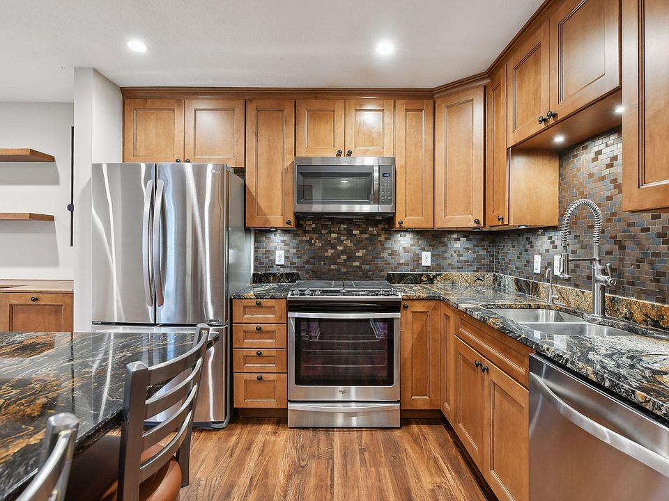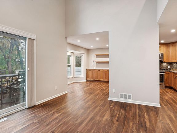 Welcome to 1668 Brunswick Avenue South, a delightful townhouse in St. Louis Park, offering modern comforts and stylish upgrades. This home features 2 bedrooms and 2 bathrooms. The kitchen shines with new appliances from 2017, complemented by granite countertops, fresh cabinets, a chic tile backsplash, and canned lighting. The dining room is enhanced with new cabinets and floating shelves, while the family room boasts vaulted ceilings and a gas fireplace with stunning stonework from floor to ceiling. Head to the upper level to find the primary bedroom, which has a walk in closet and opens to a private deck with new composite decking. The second bedroom is filled with natural light and offers closet storage. The upper level also includes a full bathroom with dual sinks. Outside, the expansive deck and serene backyard are perfect for entertaining or relaxing.