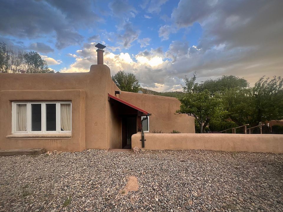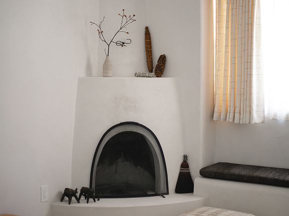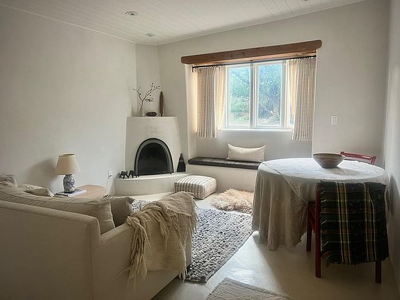 A serene, one bedroom casita that embodies relaxed elegance with high end, custom finishes and details. This recently renovated one-bedroom casita is nestled in the upper reaches of Cerro Gordo Road. Ideal for one person who appreciates refined simple living and loves being close to nature. Located in the east side historic district, 12 minutes drive to the plaza and just below the trailheads to the cottonwood lined Santa Fe river, Nature Conservancy Twomile pond, the Randall Davey Audubon Center and the Dale Ball mountain trails. The neighborhood and casita are deliciously quiet and cozy like a nest. Amenities included: kiva fireplace to warm the living room, new mini split heater/ac units, brand new fridge and range, fully tiled pristine bathroom, brand new washer/dryer, natural plaster walls by SAMAS design, Waterworks faucets in bathroom, California faucet in kitchen, glazed brick kitchen, pure linen blackout blinds in bedroom, 100% cotton curtains in living room, brand new queen size Sachi Organic mattress and window views onto apple trees- no chemicals, no pesticides. The casita comes furnished, including sofa, table, queen size bed and kitchenware. Option for unfurnished. with 12 month lease. 1 month lease, renewable. The casita comes furnished, including sofa, table, queen size bed and kitchenware. Internet, garbage and water costs included. Renter pays electricity. No pets, no smoking