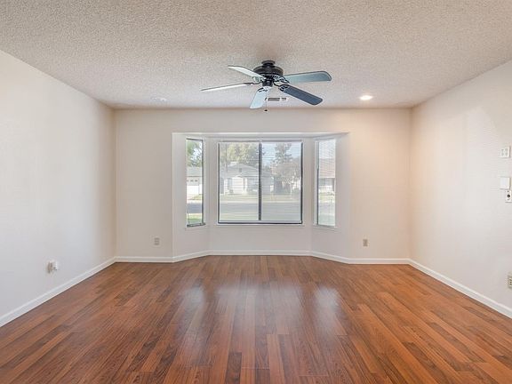 This wonderful 4/2 family home is offered at a fabulous price and located in the award winning Clovis Unified School District. Live large in this open concept design which flows seamlessly between living rm, formal dining rm, and kitchen. Ceiling fans, large bay windows, and built-in speakers enhance the living room, while easy care wood laminate and tile floors run throughout the common areas. The formal dining room offers a masonry fireplace flanked by ceiling-to-floor length windows to allow natural light. Bedrooms feature neutral carpeting to fit any dcor style. The lovely well-established backyard offers loads of space and an extra bonus of roomy RV parking on the side yard.