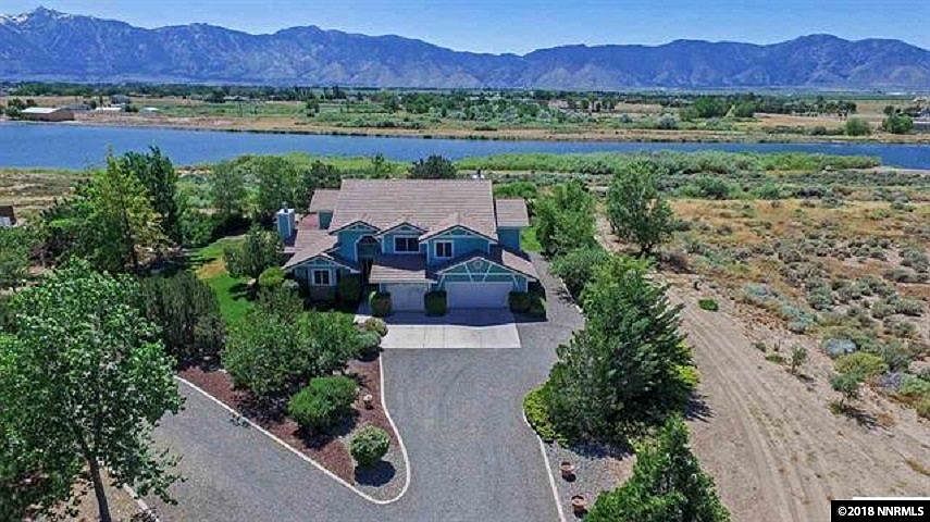 Traditional style home on 10 acres with seasonal pond - Dangberg Reservoir. Over 3700 sq.ft. of custom living, the welcoming foyer opens to an oak staircase leading to a room size landing and 4 bedrooms. An electric track chair has already been installed for those who have difficulty maneuvering steps. There is a den/library, formal living room with fireplace and a formal dining room beautifully appointed. To the rear of this floor plan you will find an open country kitchen with casual dining space,