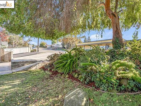 You're going to fall in love with this gorgeous, single-level, ranch-style home. It sits back from the street amongst mature landscaping in a lovely neighborhood near Hayward High School. Recently refreshed, & move-in ready. The inviting backyard dining area is surrounded by mature trees. There's space for the grill, & a firepit conversation spot for s'mores-making evenings under the stars. Off-street parking for 3 & a partial basement for storing all the toys and gardening gear. Ramped access from the driveway makes it very close to level-in. French doors lead into the large great room, with its richly-stained, large-format parquet hardwood floors and stunning fireplace. Large windows allow the room to be bathed in dappled sunlight throughout the day. Generous-sized bedrooms with built-in desks. Serene vistas from most every window. Close to downtown, & only about 6 minutes from CSU East Bay, this lovely home is everything you've been looking for with enough room for the whole crew!