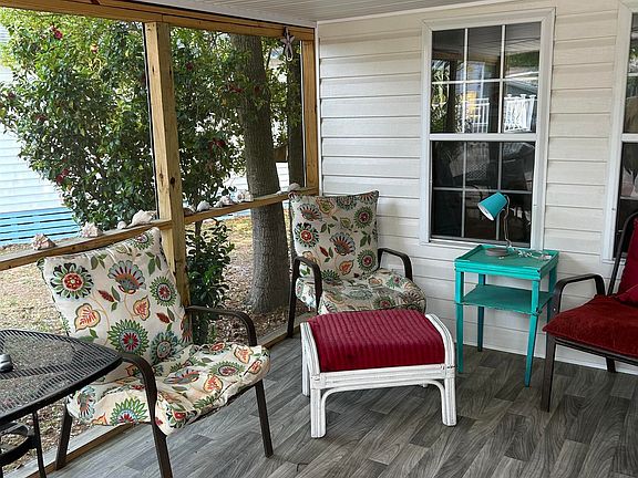 Being Sold AS IS. Newly renovated flooring and paint throughout. New full bath renovations to include vanity, tub etc. New Roof 2024 and HVAC system 2023. Three bedroom two full bath bungalow fully furnished with screened porch. Separate dining area, open floor concept family room and kitchen. Great second home or vacation rental property. Just a short golf cart ride to the ocean front golf cart parking. Oceanside Village amenities include two outdoor pools and two water parks, indoor pool, basketball court, dog park and ocean front parking for owners and guests only! Lot Lease paid separately from HOA fees.
