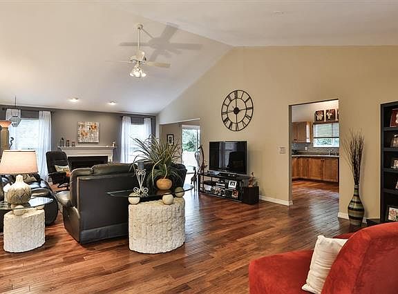 Beautiful 3Bed/2Bath Ranch home with loads of curb appeal. Extraordinary floor plan with vaulted ceilings & gorgeous hand scraped wood flooring flows throughout the Main Level. Tons of windows for plenty of natural light. Kitchen reveals solid counter tops, glass tile backsplash, double sink with disposal, a Breakfast Bar & large Pantry. Appliances include an electric cooktop, built-in oven, microwave & dishwasher. Living Room boasts a lighted ceiling fan, canned lighting & a gas fireplace w/ wood mantle. Breakfast Room flaunts a designer light fixture and sliding door to the composite Deck. Master Bedroom Suite exposes French doors, a coffered ceiling with a lighted ceiling fan, dual windows, walk-in closet and private Master Bath. Master Bath shows a pocket door, dual sink vanity w/ makeup counter, edge to edge mirror, soaking tub & separate shower. Secondary Bedrooms claim double door extended closets. Lower Level unveils a walkout to patio, egress windows & rough in for Bath.