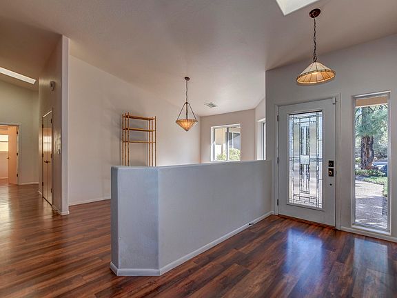 Amazing boulder setting in this completely single level 2207 sf home with 4 bedrooms and 2 full baths set within the very desirable Granite Springs Subdivision. The split floor plan creates a pleasant layout with a nice open great room adorning a stacked-rock gas fireplace, vaulted ceiling, plenty of skylights and wood-look laminate flooring. Master suite features a private water closet with heated seat, dual vanities, garden tub, separate shower and walk-in closets. This home is ready to be updated to your buyer's taste. Covered pebble-tec patio and iron fencing make for a low maintenance backyard. This property backs to almost 15 acres of private property with just one home on it right out the back gate of this yard and so it FEELS like your own private oasis with boulder outcroppings.