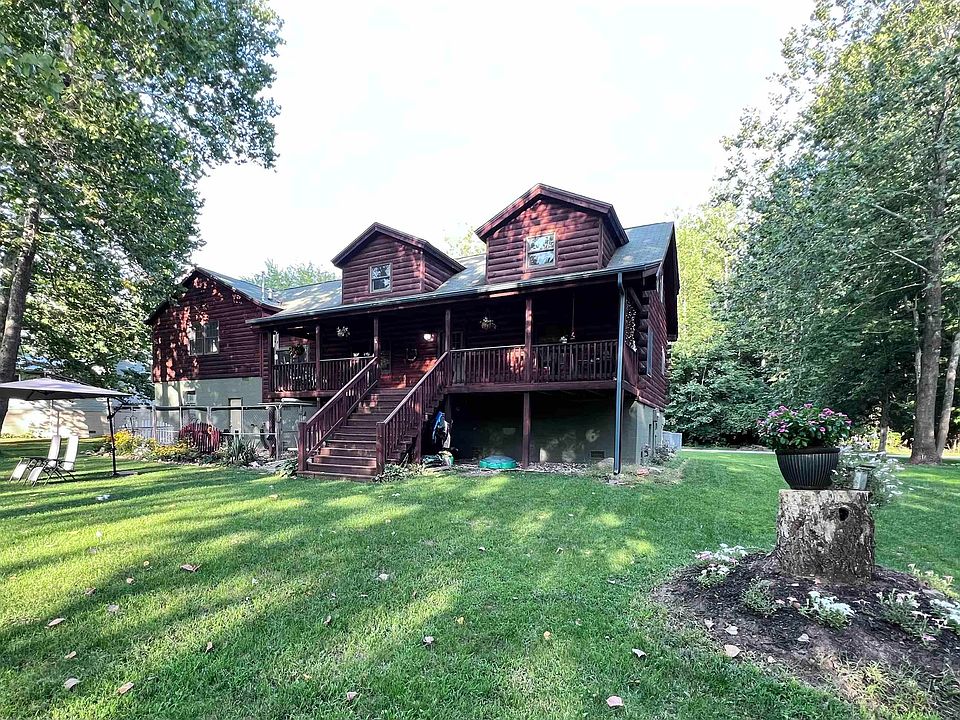 Experience riverfront living in this charming log cabin retreat! Nestled along the tranquil waters, this property includes a fresh riprap waterfront, complete with a private dock and JetSki lift for endless aquatic adventures. With 8 bedrooms, 3 bathrooms, and a spacious two-car garage, there’s ample room for family and guests. The fenced-in dog run and kennel cater to your furry friends, while the water facing back bedroom offers versatility as a cozy hideaway. Envision possibilities with a convertible pantry space, plumbed and ready to be transformed into another guest bath or secondary laundry room. Set in a serene location, this 2,934 sq ft home is the perfect blend of riverside bliss and cabin coziness.