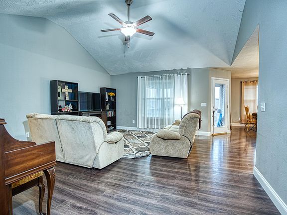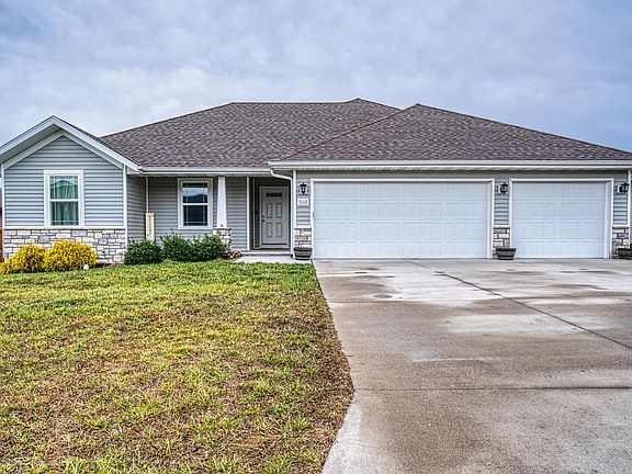 Great 4 bedroom, 2 bath, 3 car garage 2019-built home in a popular Nixa neighborhood! Split bedroom plan with the primary suite tucked on one side of the house. Open floor plan with spacious eat-in kitchen and vaulted ceilings in the living room. Granite counters in kitchen and baths. Handy mudroom off garage entrance. 3 car garage and high-efficiency furnace. Wonderful covered deck overlooking the privacy-fenced backyard.