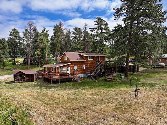 The old Indian Park Trading Post is a piece of Douglas County history, and is at once a remarkable and a rare opportunity to own a multi-use property in the heart of the Front Range foothills on 2 treed acres. Also known as the “Giddy Up Go” to the locals, it has been a general store, bakery, residence and more. Two separate living spaces - one with two bedrooms and a bathroom and the other with one bedroom and a bathroom - and a 900+ square foot “retail” space give your imagination room to run wild. Some ideas that have been proffered in the past include art studio, yoga studio, camping store, motorcycle shop, restaurant, among others. Additional features of the property include a garage with 220V/50-amp service and bonus workshop/office space; two wood-burning stoves; expansive water storage; new water heaters; RV space with electrical service; and plumbing setup for a commercial kitchen in the main building. Just 2 minutes to Rampart Range Road and National Forest, 6 minutes to the legendary Sprucewood Inn, 10 minutes to the South Platte River, and only 20 minutes to Castle Rock, this location is simply unbeatable. The mountains are calling...