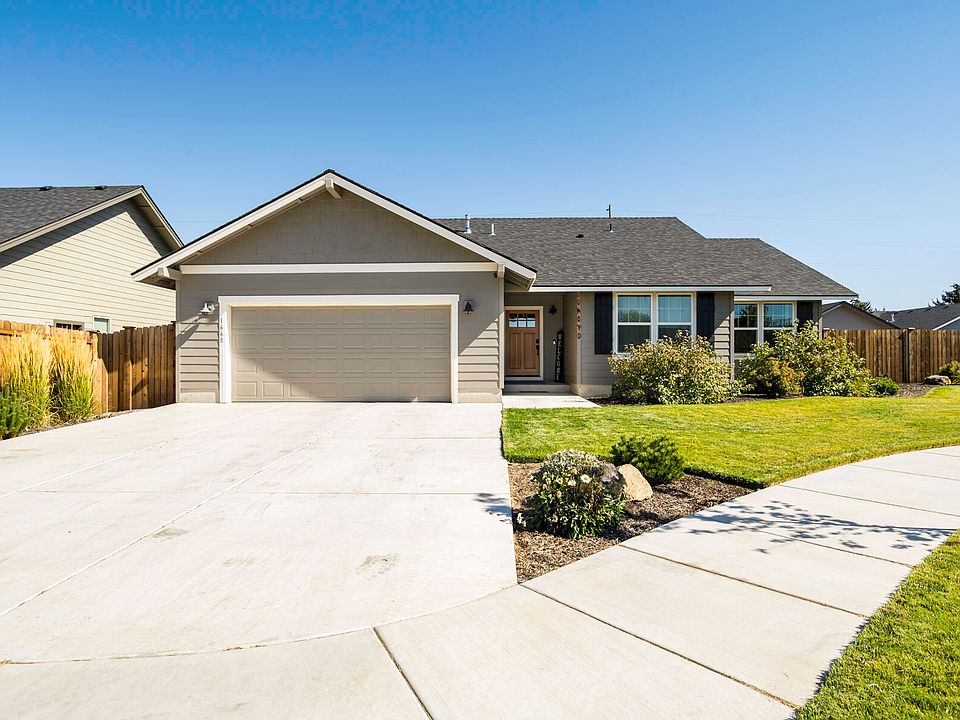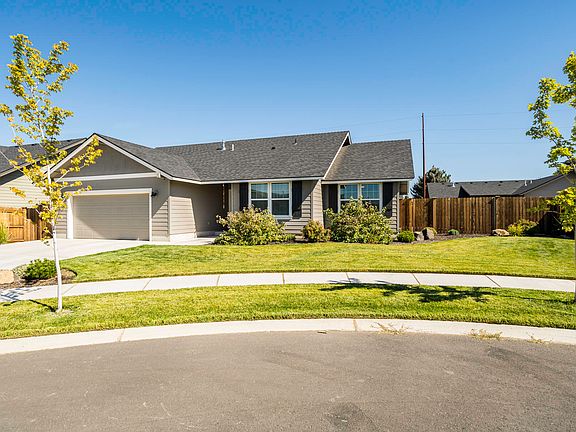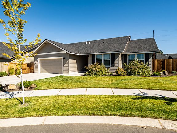 Beautiful single level home in quiet cul-de-sac apart of the Sunrise Meadows neighborhood. Three bedroom, two bath with open floor plan and move in ready. Home features include; beautiful extra wide front door, vaulted ceilings, laminate flooring through main living space, gas fireplace with surrounding tile, insulated interior doors, custom removable floating shelves, natural lighting, spacious master bedroom with double sinks and walk in closet, LP lap siding, fully fenced backyard, RV parking, large concrete patio, landscaped front and back yard with underground sprinkler system and finished attached garage. Located close to the hospital, airport and shopping. 15 minutes to Smith Rock State Park and close to all Central Oregon has to offer!