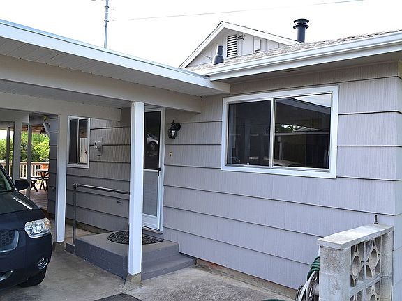 Recently updated 3br/2ba home. New kitchen cabinets & solid surface countertops. Stainless appliances. New hardwood floors and carpet. New paint inside & out. New heat pump. LED lighting throughout. Updated bathrooms. Updated laundry room with W/D and utility sink in carport area. Workshop with large workbench behind carport. Upstairs room with window & power accessible thru pull down stairs. 2 sliders to access covered back deck. Garden storage shed. Backyard mostly fenced. Mature fruit trees.