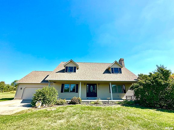 This spacious cape cod home sits on close to 5 acres close to town. Open floor plan, hardwood floors and beautiful wood burning fireplace in the living room. Kitchen has oak cabinets and is complete with appliances. Primary bedroom is on the main level has large private bath with walk in closet. Two large bedrooms with large walk-in closets and a full bath upstairs. Finished basement with family room, recreation room, office (4th bedroom - no egress window) and bathroom. 2 car attached garage and covered front porch. You will love this beautiful location and the great floor plan of this home.