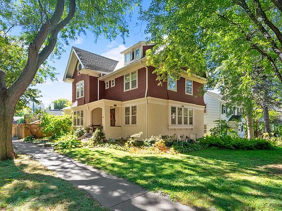Perfectly preserved history from the early 1900s shines alongside modern comforts and conveniences at 1668 Portland Avenue. Architectural interest welcomes you in with beautiful board and batten woodwork, elegant wood burning fireplace and built-ins of the era that perfectly combine form and function. History meets modern day comfort with a long list of impressive upgrades and added conveniences: luxury-level remodeled kitchen, newer 2 car garage, new roof in 2022, and newer mechanicals. Functional floor plan with spacious foundation footprint sets this home apart from the rest - 4 bedrooms on the second floor + a fifth on the 3rd floor, a bathroom on all 3 above ground levels and inviting spaces for entertaining. The backyard is your sanctuary in the city with mature trees, patio space and privacy fence. All of this sits just steps from some of St. Paul’s favorite attractions!