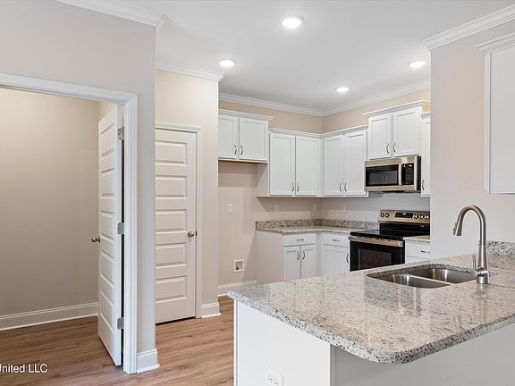 Welcome to Lakes of Nicholas! Located just minutes from Desoto Central High School, Snowden grove, Silo Square, and so much more! The Aubree Plan - Fence already installed! Upon entering the home, you'll be greeted by LVP flooring that flows seamlessly through the hallways, kitchen, dining room, and family room. The family room boasts a gas log fireplace, ensuring warmth during cold winter nights. The kitchen is well-appointed with plenty of cabinets, granite countertops, and a spacious center island perfect for bar stools. One side of the downstairs features the master suite, which includes a large bedroom with tray ceilings. The master bathroom offers a roomy tile shower, stand-alone tub, dual-sink vanity, and an expansive walk-in closet. This side also includes the utility room with LVP flooring. The opposite side of the downstairs has two additional bedrooms and a bathroom. Upstairs, you'll find a large recreational room with a closet that can serve as a fourth bedroom.