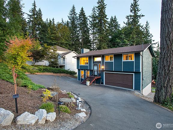 One-year lender-paid rate buy-down lowers your rate 1% for the first 12 months with preferred lender. Nestled in Emerald Lake, this fully renovated 1/3-acre gem offers modern comfort and privacy. Newly paved driveway with ample parking and oversized garage. Enjoy territorial views from the two-story Trex deck with access from both levels. Downstairs, a large yard with dog run, fire pit, garden beds, and space for entertaining. Inside features Mitsubishi heat pump A/C up and down, LVP flooring, quartz counters, stainless appliances, tiled baths, new windows, and fresh paint inside and out.