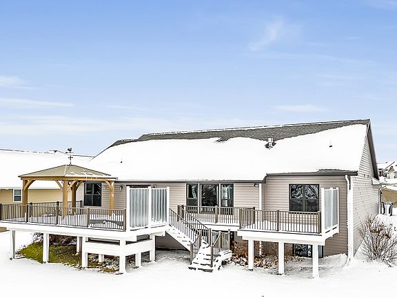 Gorgeous 5 bed, 3.5 bath ranch with over 2,900 square feet located in the desirable Village of Howard. The main level features an open-concept, split design, large family room with gorgeous gas fireplace w/ cathedral ceilings, a laundry room and a spacious kitchen with grant countertops and snack bar. The master suite offers cathedral ceilings, a walk-in closet, private bath w/ tile walk-in shower and walk-in closets. You'll also find a full bathroom. You'll love the hardwood flooring. The lower level features egress windows, a large rec room, two bedrooms, a full bathroom and a infrared sauna. You'll love the 2-zone heating, custom trim, 6 panel doors, deck and more!