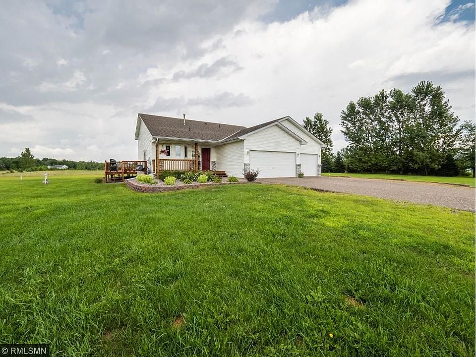 Beautiful four level home on 2.5 acres! Features a freshly finished lower level, with new bath, non-conforming third bedroom/office. The basement is unfinished and offers great storage space, and laundry area. You will appreciate the covered front porch, 10 x 20 deck off the dining room, heated and insulated spacious three car garage. All situated on a nice 2.5 acre lot in Orrock Township with room for a future shed/pole barn.