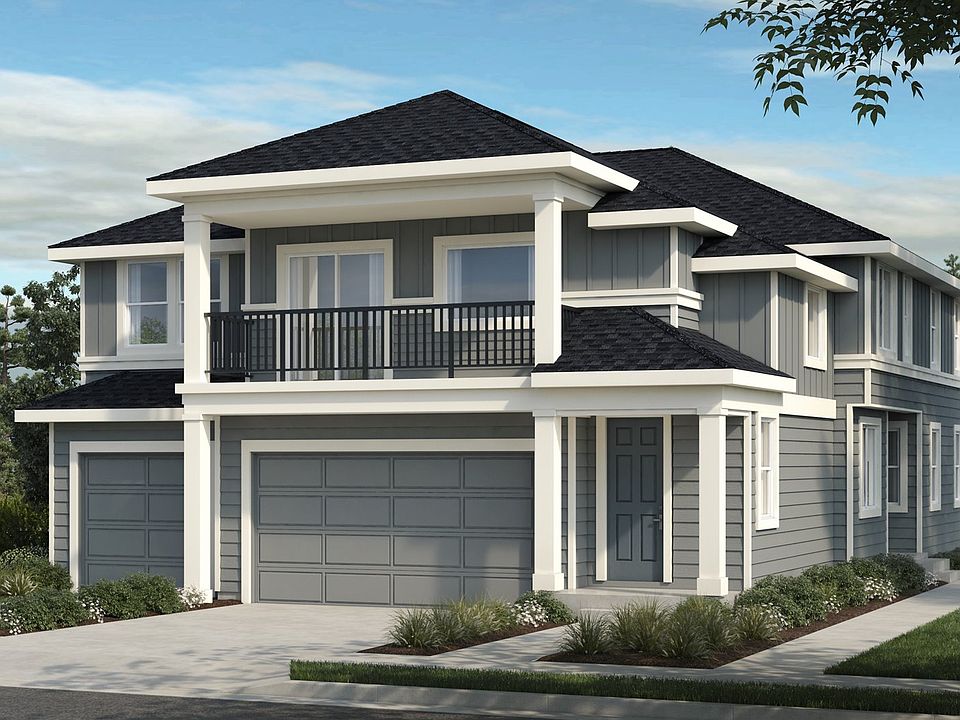 1 level living ~Wembley~ on upper floor - 4 bed, 3 full bath, 2,023 sf. Open & spacious w/Vaulted ceilings, large windows, stainless steel appliances & upgraded finishes included! Private HUGE deck, 2 car side by side garage. Showings 10am - 5 pm. Move in December! Photo of rendering and not of actual home.