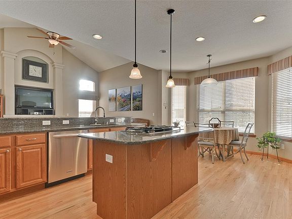 Stunning ranch style home w 1944 sq ft RV (& storage or other toys). Located on cul-de-sac backing to beautiful open space, this ranch home has an open light & bright feel. Beautiful kitchen w newer appliances, gas stove, double ovens, granite ctr tops, eat in area & pantry that connects to a spacious family room w fireplace. Master bedroom is huge 5 pc bath & walk in closet. Partially finished bsmnt w 2 bdrms & 3/4 bath. Covered patio & hot tub built for fun! Great home & lot, and AMAZING almost 2000 sq ft outbuilding w 14x12ft doors you must see!