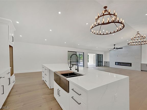 (Completing the finishing touches on this beauty!) Nestled within the highly sought-after gated community of "The Forest" lies an exquisite sanctuary of luxury living. (with front & back gate with security guards) Situated within 620 acres of breathtaking nature preserve your new dream home includes the coveted 43,215 SF "Forest Country Club & Golf Course" with 9,414 SF addition. Membership to the club is optional, granting access to two 18-hole award-winning walkable golf courses, picturesque landscape, multiple tennis & picklelball courts with restrooms, indoor & outdoor bar & even bocce! The extravagant clubhouse has been completely renovated with new construction, remodeling, and expansion overhaul, boasting new: covered terrace & sun terrace casual dining, lounge areas, bar, a fitness gym, card room, restrooms with locker rooms, outdoor fire pit and entertainment space for concert & holiday events and more; offering an unparalleled lifestyle for residents. Low HOA fees $2,740 that also includes internet & cable. Within the neighborhood is a park that includes a gated children's playground, basketball, closed-in lanai bathroom facilities, and plenty of space for kids and pets to roam & play. Over 8 miles of lighted sidewalks, over 25 lakes of all sizes that are home to many wildlife such as otters, ducks, & turtles. Meticulously maintained landscape is prefect for bike riding & walking Step into this immaculate abode and discover a haven of modern indulgence.... *Welcome to this Newly Updated 4-bedroom, 3-bathroom, 3-car garage POOL home boasts an open floorplan with all new engineered wood flooring throughout. NEW kitchen features soft-close shaker cabinets with quartz counters, a stainless steel package, and an oversized island that serves as the centerpiece for culinary delights. Enjoy the convenience of a large kitchen farmerhouse sink, ideal for meal preparation and cleanup. Cozy up by the custom-built electric fireplace in the living area, adding warmth and a modern ambiance to your gatherings. Unwind in the lavish master suite featuring a custom shower with sewing & multiple shower heads as well as dual sinks/ double vanity in the master bathroom. Entertain guests effortlessly in your backyard that's has an extra large paved pool deck & lanai with custom fireplace & an outdoor kitchen complete with grill, sink, & fridge. Come enjoy your newly-tiled pool, & even room for outdoor furniture. Conveniently located near Interstate 75 as well as the Cape Coral Bridge, this home offers easy access to a wealth of amenities including shopping centers, restaurants, and grocery stores, ensuring that every necessity is within reach. Within minutes of public schools, hospitals, airport, and beaches. Experience the epitome of refined living in this pool home within The Forest. Schedule your private tour today and embark on a journey to elevated living. If you would like to choose your appliances. (*Seller is offering 8,000 appliance credit!)