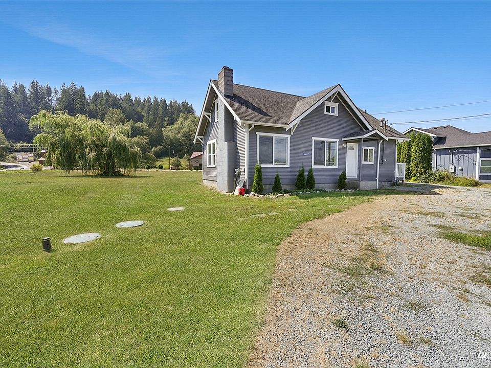 Adorable farmhouse style home on nearly an acre in Big Lake! Enjoy expansive territorial, mountain & Mt. Baker views! There is so much to love about this home! Cozy gas insert fireplace in living room for those cold winter nights. Barn door entrance to kitchen which boasts a built-in banquette, butcher block island, plenty of storage space plus a dining room or sitting area w/laundry closet. Downstairs bedroom w/hardwood floors makes a great office space. Upstairs has two bedrooms with a loft reading nook. Plenty of outdoor space to add a deck or patio entertaining area. Horseshoe driveway with additional RV or boat parking. Great location within walking distance to elementary school & store. You will love the wide-open space! Act today!