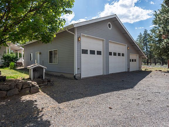 Nicely maintained single level home on 2.3 acres w/detached 4 car garage, heated RV shop, & large garden shed located 5 minutes from Sisters, 20 minutes from Redmond, & only 25 minutes from Bend. The interior of the home is in nearly perfect condition & has a very usable great room layout. The living room has a propane fireplace & access to the back yard. The dining area has built-ins & located between the living/kitchen. The kitchen comes equipped w/newer appliances, a spacious layout, pantry, & tile countertops. The primary suite has room for an extra living area/office, a well laid out bath, generous walk-in closet, & access to the back yard & private deck. Out back is a nicely landscaped/fenced yard w/sprinkler system front/back. The RV shop has a 14' roll up door & is fully finished inside w/propane heat & the detached garage has a heated/insulated workshop area w/half bathroom. The garden shed attached to the well house is insulated & has room for all your yard care equipment.