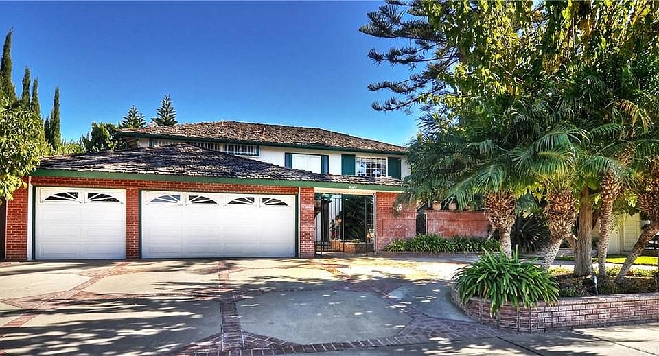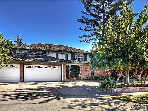 Lovely "Regal" Fairmont Estate-Style Home with Old-World Charm & Warmth Throughout. Features 5 Bedrms, 3 Baths (1 BD/1 BA Down), Brick-Accented Circular Driveway, Lg Gated Brick Courtyard Entry w/Raised Planters & Welcoming Patio, Double Beveled Glass Entry Doors, Majestic 2-Story Foyer w/Dramatic Sweeping Staircase & Large Elegant Formal Living & Dining Rooms w/French Windows & Custom Mirrored Walls. Beautifully Upgraded Kitchen Boasts Granite Countertops/Backsplash, Recessed Lighting, Custom Cabinetry w/Pull-Outs, Pantry, Huge Garden Window, & Breakfast Bar & is Open to the Inviting Family Rm w/Crackling Fireplace, Wall Mural & Wall of Glass Sliders Overlooking Lush Tranquil "Storybook" Backyard w/Covered Brick Patio, Brick Side Patio, Waterfall & Pond, Shade Trees, Gazebo, Bronze Deer, Brick Pathways & even a Hansel & Gretel Greenhouse Cottage. Upstairs Landing Bridge has Custom Built-Ins & Leads to 3 Spacious Guest Bedrms (2 w/Built-In Desks/Counters/Shelving), Guest Bath w/Tub/Shower Combo & Giant Master Suite w/Huge Walk-In Closet & Private Bathrm w/Dual Sinks. Also Included is Attached 3 Car Garage, Security System w/TV, Mirrored Closets, Ceiling Fans, Built-In Shelving in Down BD. Close to Mile Square Park, Shopping, Excellent Schools & Beach.