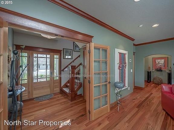 Lake Oswego Canal District with 4 Lake Easements! - Enjoy the summer on Lake Oswego with this wonderfully designed and updated home. Located on Maple Circle, a peninsula that reaches out into Lake Oswego, the home is bright, has nice privacy and is a short walk to the water. As you drive up to the circular driveway framed by a Giant Sequoia tree, you find a peaceful setting and a quiet street. The entry is framed with woodwork and hardwood floors. It leads to a living room with built-in ceiling speakers, bay windows looking out to the private back yard, a gas fireplace and a large wood hearth. This leads to the dining area with French doors opening to the back patio and beautiful custom designed lighting. Off of the dining area is the kitchen, featuring granite counters, 5-burner gas stove, Miele Dishwasher, stainless country sink, stainless refrigerator and views out to the front of the home. Moving down the hall from the kitchen is a spacious laundry room with tile, cabinets, hanging bar and a counter for folding. There is a beautiful full suite with French doors leading to a private covered patio, walk-in closet with built-ins, ceiling speakers, ceiling fan and a custom tiled full bathroom with a shower and jetted bathtub. At the other end of the main floor you will find a wonderfully tiled guest half bathroom and two other beautiful bedrooms that share a bathroom. One bedroom faces the front yard, the other faces the back and has French glass doors to the back patio. Both rooms have vaulted ceilings and skylights. The shared bathroom has a large shower, is vaulted, has a heated floor and granite counters. Up stairs is a very large family room with vaulted ceilings, a storage closet, and a beautiful half bathroom with marble and slate accents. There is a gas fireplace with a custom artistic hearth, ceiling fan and inset speakers. This has a doorway to the stunning outdoor patio that looks out to the Lake. Also on the upper floor is a nice kitchenette with refrigerator, sink, dishwasher and cabinets. The big surprise is another full suite with a door to the outside open patio and a full bathroom with hex-tile, jetted tub and spacious shower. The back yard has pavers and is very private, great for entertaining. There is a waterfall and an extra building, perfect for an office or additional playroom. This is a well maintained yard with a documented Lake Oswego Heritage Tree Sequoia. The garage is extremely nice, it has access to the hallway next to the kitchen as well as a direct door to the back yard. It also has finished cabinets and a sink. This home is in the Westridge Elementary school district, as well as Lakeridge Jr. and Sr. High schools. No pets and no smoking please. Easements available for a fee, tenant to check details at lakecorp.com. No Pets Allowed (RLNE2483067)