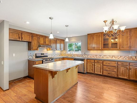 Enjoy one level living in this darling ranch style home. Surrounded by a fully fenced very private backyard. New white vinyl fencing strikes a beautiful note for your landscaping. You will enter into the wonderful kitchen showcasing the large island with breakfast bar, lots of cabinets and a dining area in front with a fabulous bay window overlooking the beautiful landscaping. The new laminate wood flooring flows easily into the living room. Relax in front of the woodburning fireplace or step out directly into the large sunroom, which leads to a fully covered patio for a lovely outside area to relax and enjoy your private bit of nature with a fig tree and smoke trees. There is lots of room for your own gardening touches along with the Rainbird sprinkler system. The primary suite has new laminate wood flooring and a connected bath with shower. The oversized garage has lots of shelving and storage. The remaining 2 bedrooms have wall-to-wall carpet in excellent condition. Enjoy all that living in King City offers, the aquatic center is on track to be back in service soon, the summer outdoor pool is a lovely place to meet friends and enjoy the summer. Play golf and enjoy the many clubs and groups offered for all homeowners. Enjoy the expanded service of King City Link, a free, weekday public transportation service that connects King City, Tigard and Tualatin to Bridgeport Village. This home has 3-year-old furnace/heat pump and water heater. New sewer line.