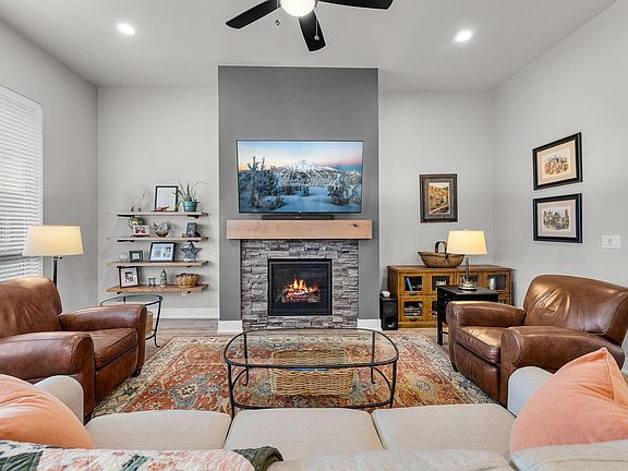 Better than new and priced to sell! This 2022 Pahlisch-built home is upgraded with over $35,000 in enhancements, including nearly $10,000 in appliances, $13,000 in upgraded finishes/features, and $10,000 in fencing, landscaping, and gutters. With wide hallways, high ceilings, and abundant natural light, this home feels both spacious and inviting. The kitchen boasts quartz countertops, full-height backsplash, an island, a large pantry where the microwave is tucked away, a WOLF range, and a BEKO refrigerator. The living area, featuring a custom-tiled fireplace, leads to the office/den. The primary bedroom is privately situated, with direct access to the covered patio, a large closet, and a double vanity in the bathroom. RV parking is possible with the addition of side fencing and a gate. Enjoy community amenities like a clubhouse, gym, parks, green spaces, and walking paths. Make this stunning home yours today!