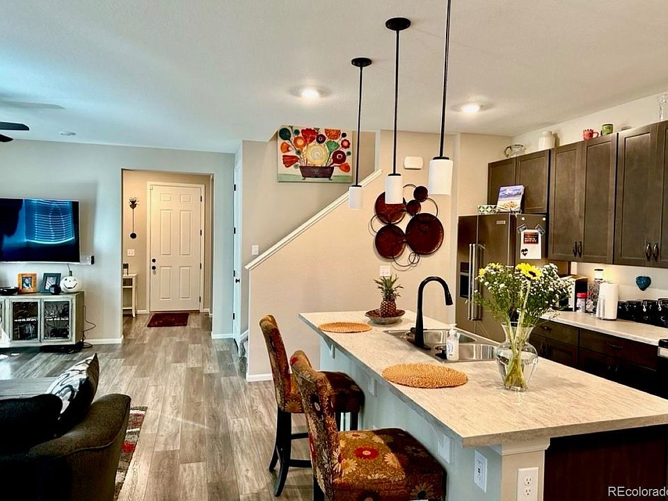 This stunning 3-bedroom, 3-bathroom luxury townhome in Broomfield, Colorado, offers a spacious open floor plan and modern design that provide both comfort and functionality. The main level seamlessly blends the kitchen, dining, and living areas, creating an inviting space for entertaining. The second level offers three generously sized bedrooms, including a primary suite with its own private ensuite bathroom, and the added convenience of second-floor laundry. One of the few units in the community with a basement, this home features an unfinished lower level that offers endless potential for customization—whether you envision a home gym, theater, or additional living space—and it already includes a professionally installed sub panel for future expansion. The fenced backyard with low-maintenance xeriscaping in both the front and back provides a perfect balance of beauty and ease. This home combines luxury living with thoughtful design, making it an ideal choice for anyone seeking space, style, and convenience.