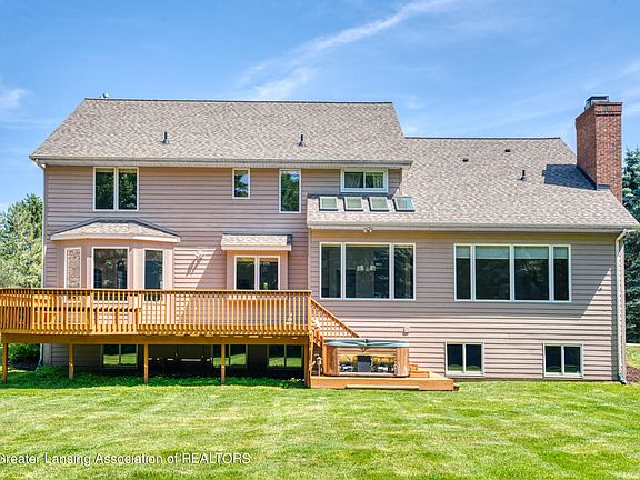Beautiful and exceptionally maintained custom 5 bedroom, 5 bath home in desirable Whitehills Lakes North is situated on over 1/2 acre, with a large tree lined backyard and large landscaped front yard. Enter the two- story foyer from the covered front porch and into this Fedewa built home. Formal living and dining with fireplace, 9' ceilings, crown molding and hardwood flooring. Office with built-in bookcases and a family room off the elegant kitchen with center Quartz Island, stainless steel appliances, granite countertops, tiled backsplash, wine cooler, skylights, engineered hardwood flooring, LED light strips mounted under cabinets & in upper glass cabinets, and breakfast nook. The first floor is completed with a walk-in pantry and laundry room.