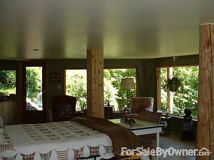Privacy with Convenience are yours in this hexagonal country home on 10 acres bordering NFS land. Striking views from this 2BD/2BA abound. Vaulted wood ceilings, a loft, wrap-around decks are just some of the distinct features. The lower level's bright multi-purpose room (guest quarters; family room/office) has a designer bathroom. A charming guest cabin looks out to a pond. The shop has large 2nd & 3rd floors for bonus-room use. Included are a 2-car carport, an RV pole building, fenced garden and more.